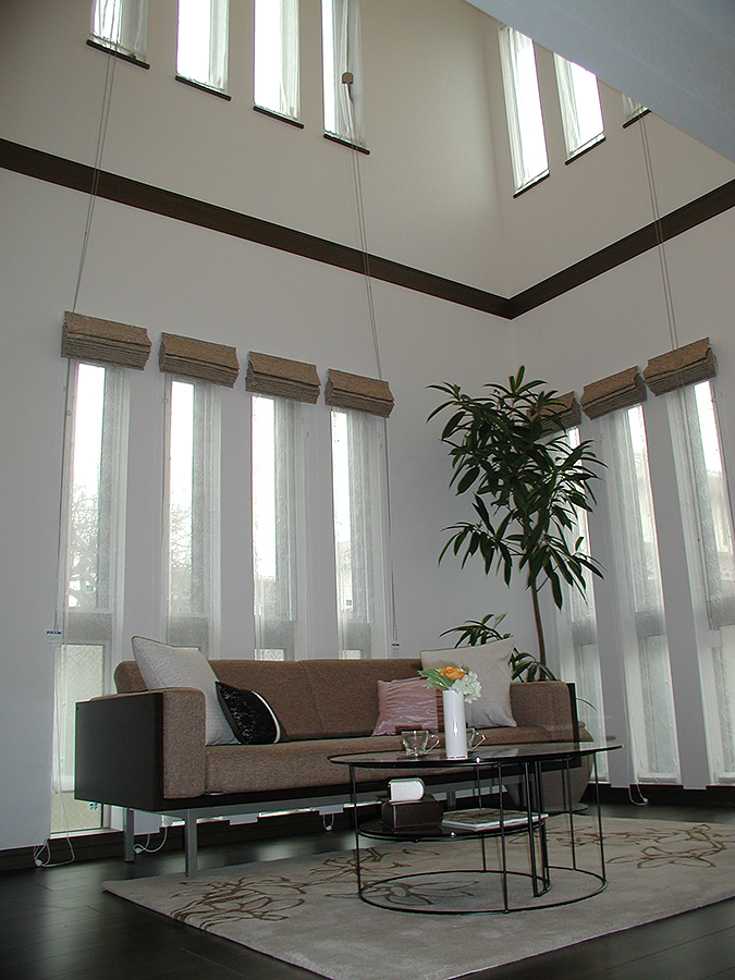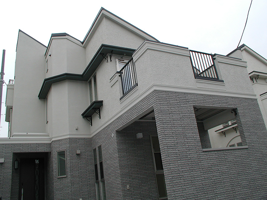 街並みの中心に、インターロッキングでデザイン舗装した 開発道路を配置し、全世帯共有で使用できる広場のような存在としました。 1棟1棟微妙に違うデザインや間取りの、楽しい街並構成を施しました。