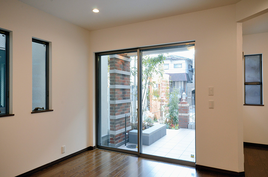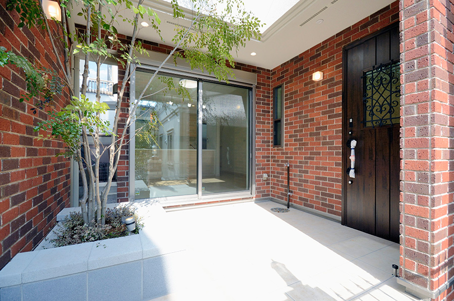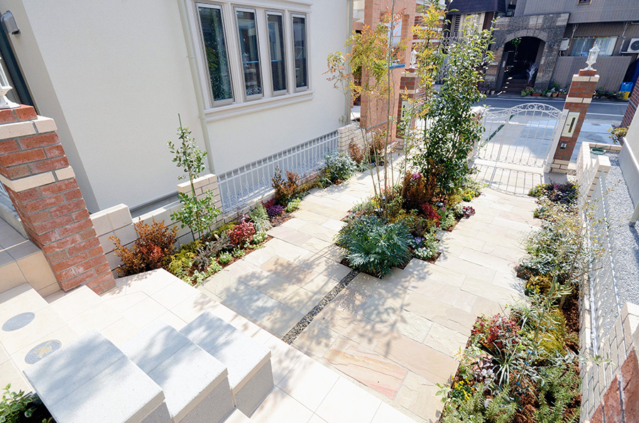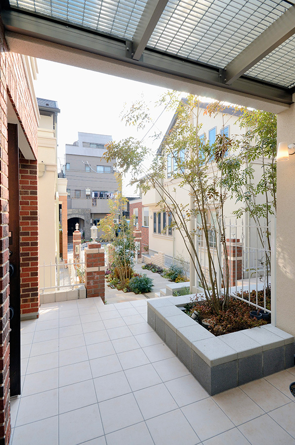 潤いある緑道のようなアプローチ空間を設けた外構デザインなど、