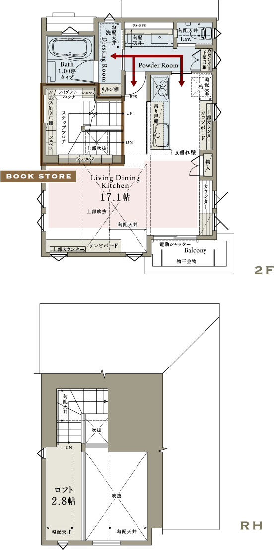 階段に設けたライブラリーベンチは
