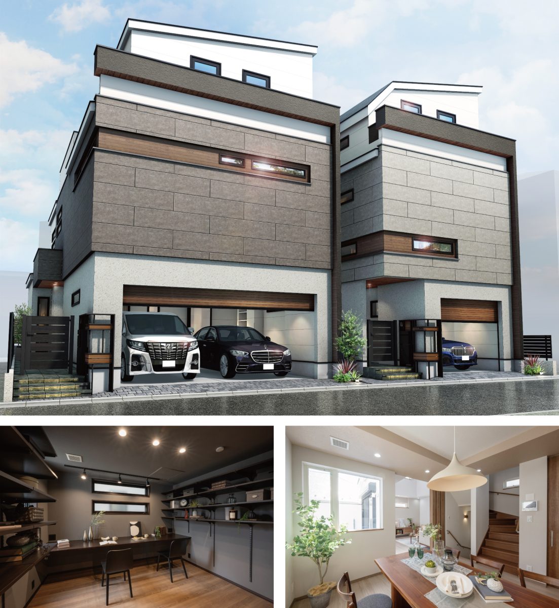 建物面積:167.88㎡~172.41㎡(50.78坪~52.15坪)※車庫等面積 34.35㎡・18.81㎡を含む