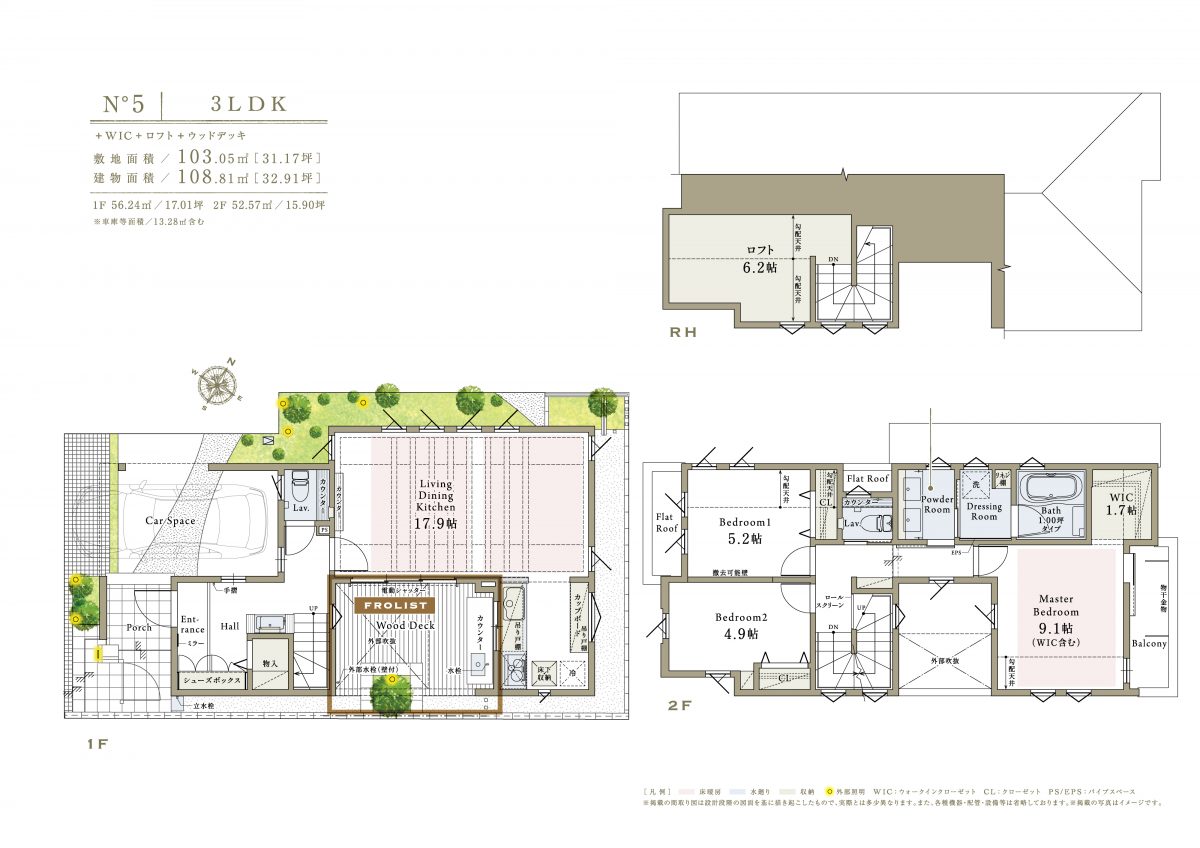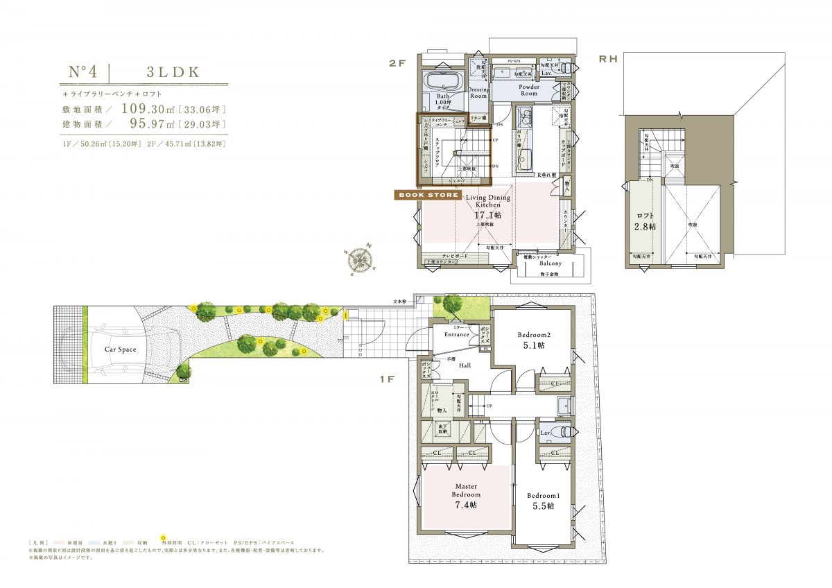 95.97㎡ ~ 159.85㎡ (29.03~48.35坪)※車庫等面積 35.22㎡を含む |