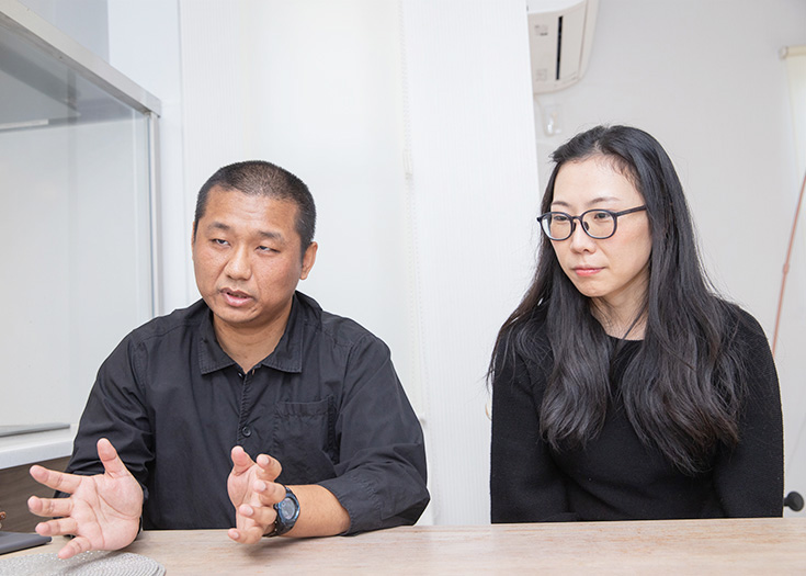 「日本のアニメが好きで、日本でぜひ働きたいと来日しました。妻は芸大を出て、今は塾の講師をしています。油絵が専門で、塾は留学生が日本の美術大学に入るためのノウハウを学ぶところです」と、ご主人。