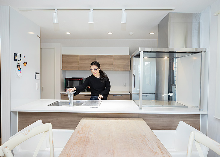 「2世帯に分けると、電気や水道料金がそれぞれになって割高です。この家は1世帯用と2世帯用の両方が使えるよう事前に分岐工事されており、現在は1世帯用を使っています。賃貸に出すときは2世帯用に変えられるそうで、そんな見えない部分の気配りがうれしいです」